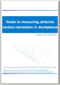 This document is a guide to measuring airborne CNTs in workplaces, as a means of CNT safety management. This guide summarizes the available practical methods for measuring airborne CNTs: (1) on-line aerosol measurement, (2) off-line quantitative analysis (e.g., thermal carbon analysis), and (3) sample collection for electron microscope observation, and also presents measurement cases performed by TASC.